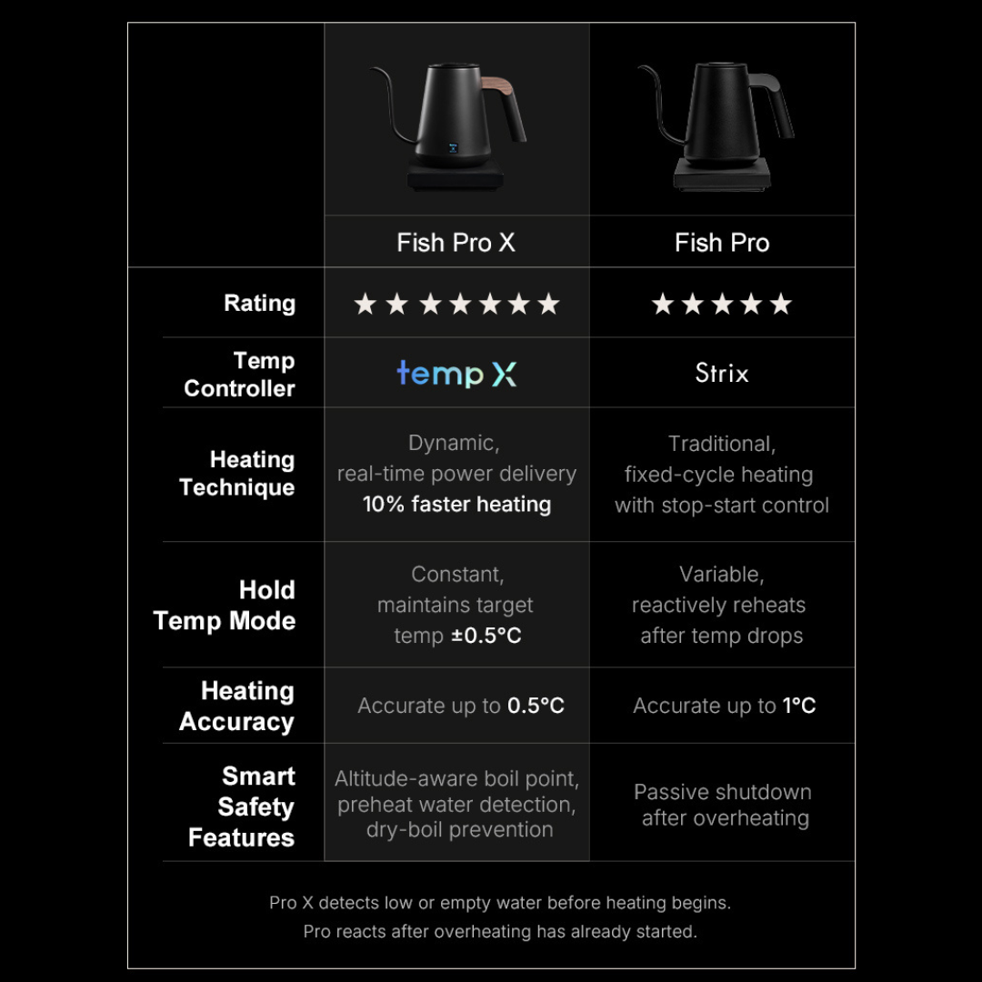 The Fish Pro X introduces Temp-X, a rapid-response precision heating suite engineered for baristas who demand absolute control.