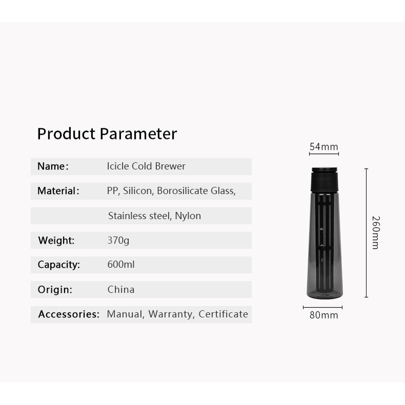 Timemore Icicle Cold Brew Coffee Maker 600ml removable food grade PP filter frosted glass body ice coffee maker