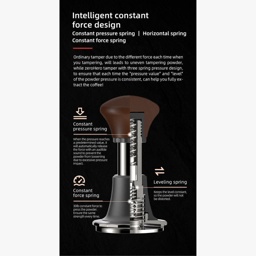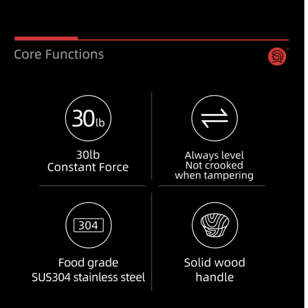 - Consistent 30lbs Pressure: Equipped with a triple-spring mechanism calibrated to apply a uniform 30lbs (13.6kg) of pressure, ensuring even coffee ground compression for optimal extraction.